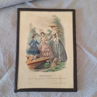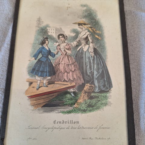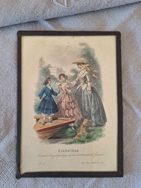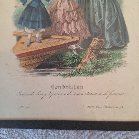 | フランスの大変古いモード誌のリトグラフ(銅板画)を額装したものです。 モード誌はJuin、1851「ジュアン、1851」和訳は(1851年6月)と記載されています モード誌はCendrillon:「サンドリヨン」と読み、これはフランス語で「シンデレラ」の意味です。 女性のあらゆる仕事に関する百科事典的な雑誌だったようです。 古いメタルの額縁でガラス入りで壁に掛けるフックがついています。 インテリア的にも趣があり、飾って楽しんで下さい。 ※コンパクト宅急便(追跡、保証あり)でお送りします |