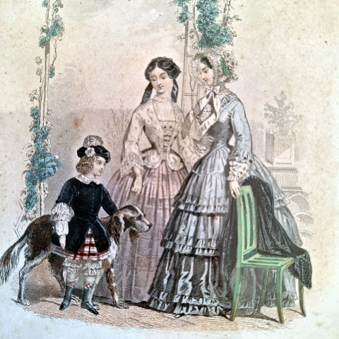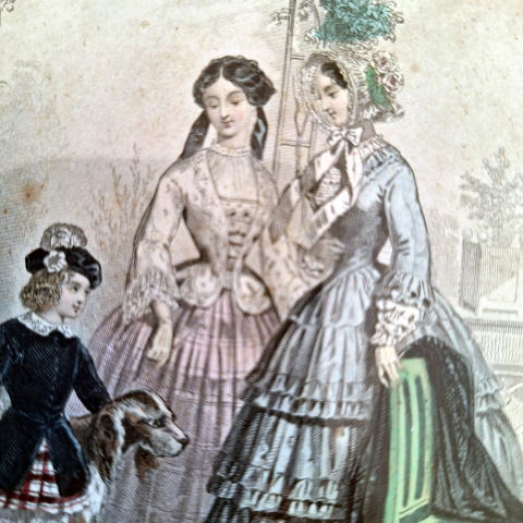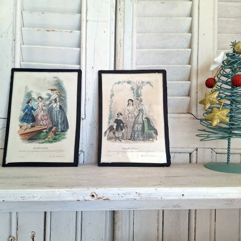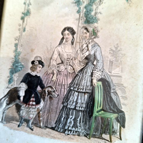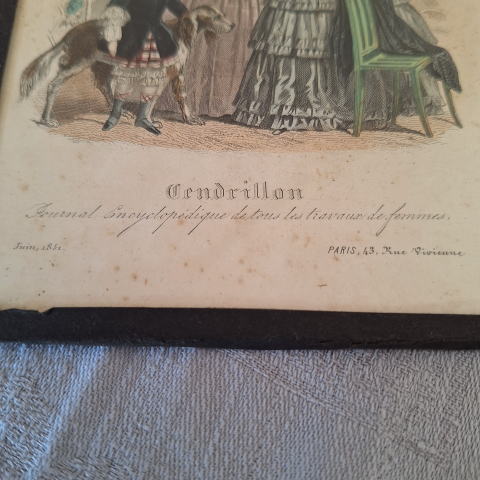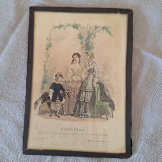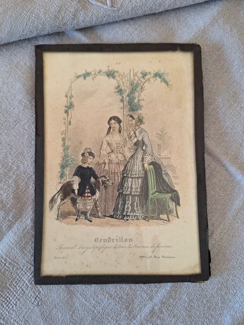 フランスの大変古いモード誌のリトグラフ(銅板画)を額装したものです。